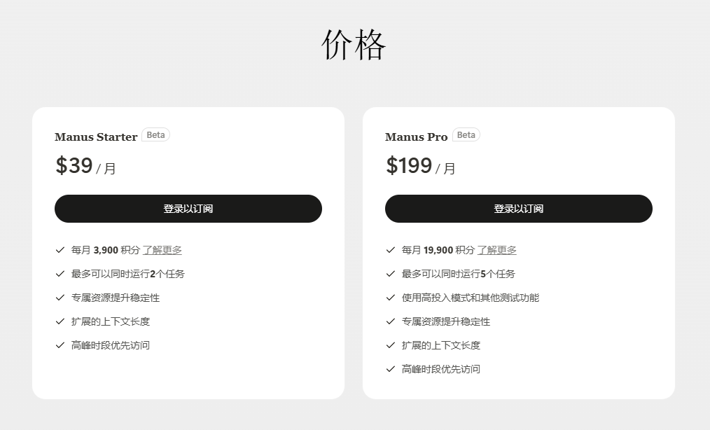 你的位置:九游闪烁之光开服时间表 > 新闻动态 > Al Agent产品Manus公布收费标准